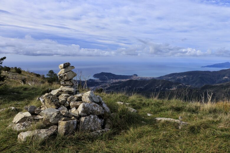 In foto la vetta di Monte Pu’ con il suo straordinario panorama. Il monte Pu’ sorge nel comune di Castiglione Chiavarese alle spalle di Sestri Levante in provincia di Genova. Dalla sua cima è possibile ammirare uno splendido panorama a trecentosessanta gradi su tutte le vette circostanti e sulla costa, dalla Toscana alle Alpi Marittime. …